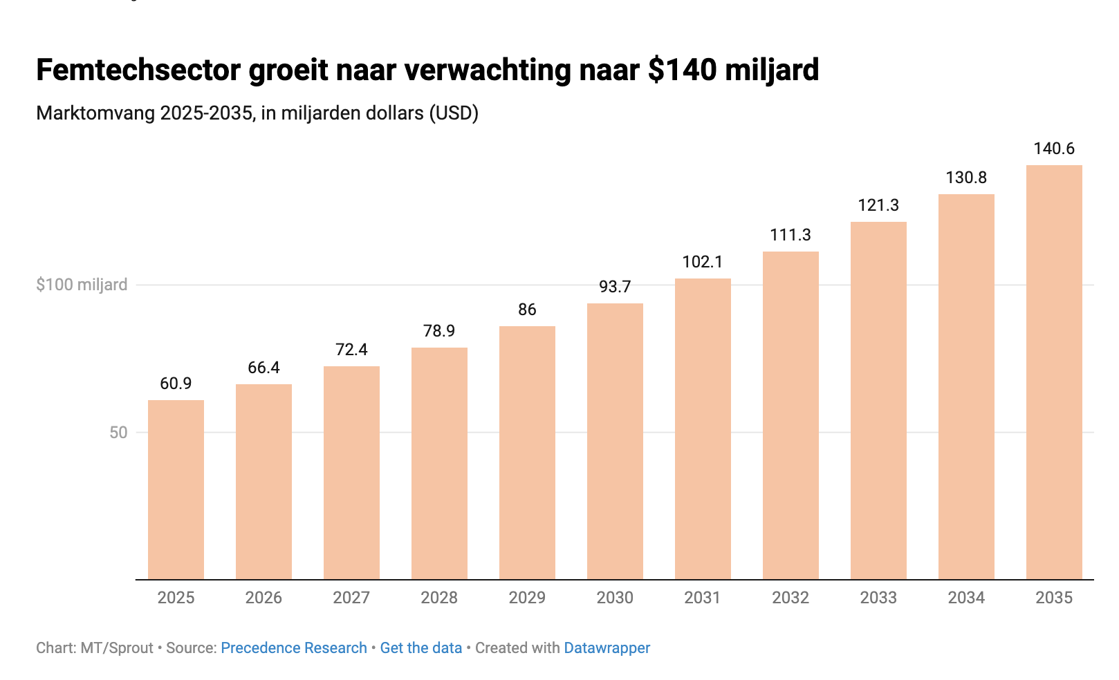 Sinds Clue-oprichter Tin femtech tien jaar geleden op de kaart zette, is de sector wereldwijd snel gegroeid. In 2025 vertegenwoordigde femtech volgens het Canadees-Indiase onderzoeksbureau Precedence een marktwaarde van 60,9 miljard dollar. De markt zal naar verwachting de komende tien jaar meer dan verdubbelen, tot 140,6 miljard dollar in 2035. Vooral de laatste vijf jaar is femtech in een stroomversnelling geraakt.